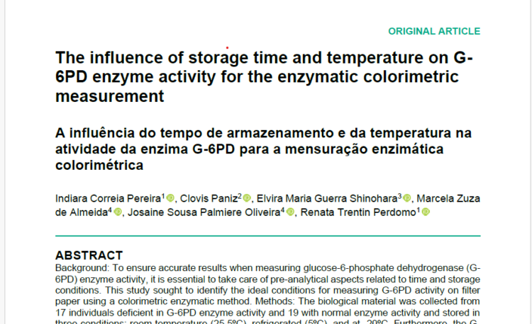 A pesquisa teve como objetivo avaliar o impacto das condições pré-analíticas, especialmente o tempo e a temperatura de armazenamento, sobre a atividade da enzima G-6PD, marcador importante na identificação de alterações metabólicas relevantes no contexto da triagem neonatal.