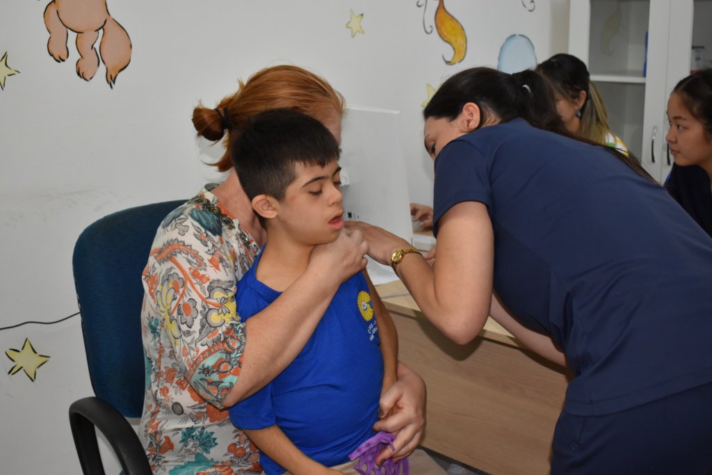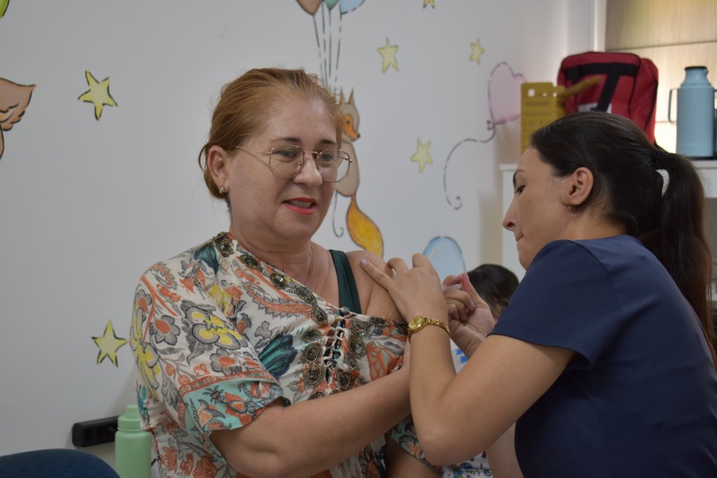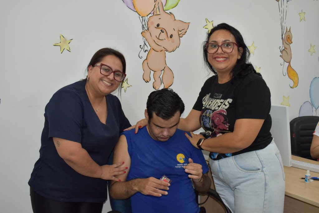 A vacinação contra a influenza (gripe) foi realizada no Centro de Educação Especial Girassol (CEDEG/APAE), em parceria com a USF Botafogo, por meio da Secretaria Municipal de Saúde (Sesau). A campanha, que já acontece há 4 anos, disponibiliza a equipe de saúde por um dia para vacinar alunos e funcionários da unidade.